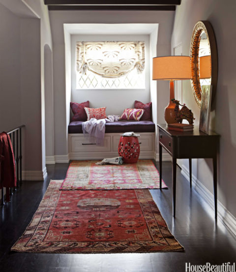 Con unas viejas alfombras y unos almohadones se ha creado aquí un fantástico rincón de lectura cálido y acogedor.