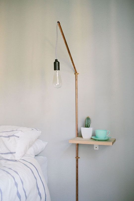 Lámpara y mesilla de noche de aire industrial y minimalista. Es un proyecto DIY fácil de llevar a cabo y que quedará muy bien en un dormitorio de estilo actual.