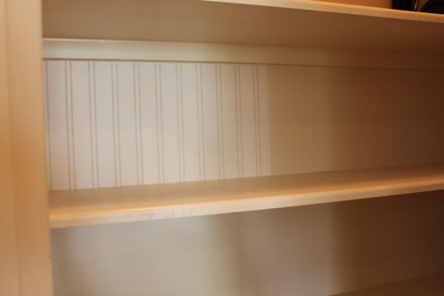 En la foto superior podemos ver cómo estaba la despensa antes de comenzar el proyecto de decoración y organización del sistema de almacenamiento. Se optó por empapelar las paredes con un buen papel pintado decorado con rayas, un papel que puede pintarse.